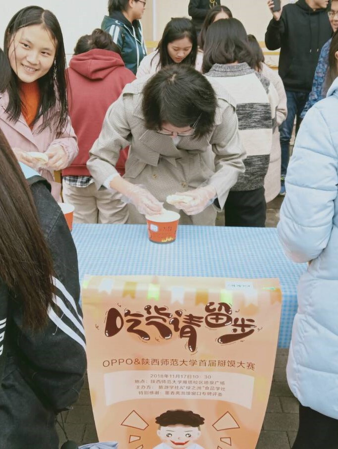 2018年11月17日,365官网旅游学社在喷泉广场与绿之洲联合举办了“行也,食也”活动暨陕师大第一届掰馍大赛。这次比赛特别邀请了墨香斋贾家楼第五代传人白师傅作为评委,设置20个参赛名额。